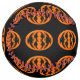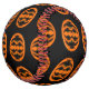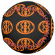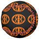 Ce softball impressionnant est orangé d'un ovale avec six corneilles dedans. Chaque corbeau a des yeux jaunes avec des élèves noirs et des ailes étirées. Les corbeaux volent vers l'autre formant une forme ovale. L'arrière - plan est noir.