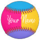 Customisez un softball avec votre propre nom ou texte! Il suffit de suivre les invites sous personnaliser, pour les zones de texte avant et arrière. Conçu pour votre commodité par HAMbyWhiteGlove. Play Ball! Boule rose, violet, jaune et bleu avec écriture rouge pour correspondre à la couture.
