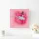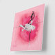 Ballerina silhouette at the barre with a white tutu and pink watercolour background