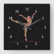A large wallclock with a ballet girl design of a ballet dancer illustration against a customisable black background. This cute dancer would look lovely in a girl's bedroom or playroom.