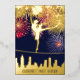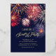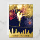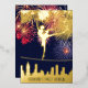 Ballet dancer dancing over New York City skyline, fireworks and stars in the sky. Elegant font combo. Night sky blue, red, light blue, and gold. Cute and fancy Sweet Sixteen invitation.