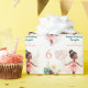 Personalized wrapping paper for a girl Birthday, with the cutest little ballerina with dark skin and hair, balloons and flowers in soft shades of pink, teal and cream on the white background. Easily personalize the text and number of the Birthday. - Kate Eden Art