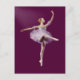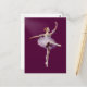 A red-haired ballerina holds a lovely ballet position up on her toes with one leg extended. Her face is in profile and a spotlight softly shines on her back. She is placed on a background of very dark red. Customize by adding a caption, name, or monogram of your own.