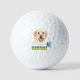 Une douce façon pour les amoureux de les chiens de montrer leur soutien à l'Ukraine. La conception de la boule de golf comprend l'illustration jaune aquarelle du Labrador Retriever avec le texte "Ukraine" et le papillon dans les couleurs bleu et jaune de leur drapeau national