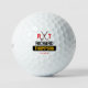 Boule de golf blanche personnalisée avec un nom dans un style de police audacieux, pour un golfeur élégant... un simple design monogrammed noir et rouge, avec des clubs de golf croisés, ses initiales et son nom... une idée cadeau cool pour cet élégant joueur de golf dans votre vie.