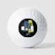Jack Russell Terrier silhouette de chien grille abstrait motif jaune et bleu avec arrière - plan tricolore dans un cercle noir. Personnalisez avec vos trois initiales en blanc sous la forme d'un chien. Parfaites pour l'amoureux des chiens de votre vie ou le père qui aime le golf, ces balles de golf sont la façon parfaite de montrer votre passion.