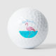 Balles De Golf Monogramme bleu tropical Nom Flamant rose rose noi