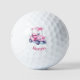 Personnalisez et ajoutez votre nom. Fond blanc. Décoré d'une voiturette de golf rose avec arc de cercle. Texte rose, courbe.
