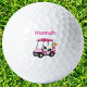 La voiturette de golf rose et blanc qui a un sac de golf pour fille.