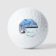 Une balle de golf avec une belle scène hivernale comprenant des montagnes enneigées, cabine rustique et des verdure enneigés. Oeuvre originale de W.B.