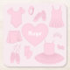 Ballet clothes with name paper coaster, light pink background. Customize the paper coaster with your special name or text, background colour among other options.