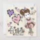 Dance recital invitations featuring a ballet dancer in a pink and brown flowered tutu and ballet slippers surrounded by hearts of pink and purple, blue birds, and flowers! These cute dance recital invitations are easy to customize with your little ballerina's recital specifics!