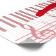 Red Ballet dancer on a keyboard surrounded by musical notes, sharps, flats and a treble clef