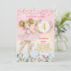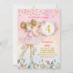 Une belle ballerine qui vous regarde. L'arrière - plan a une parties scintillant dorée sur le sommet. Une carte d'invitation pour célébrer le doux anniversaire de votre fille.