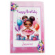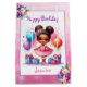 Cute little girl's birthday party gift bag. Sweet watercolor illustration of a ballerina of colour in a pink and purple tutu with pretty floral accents.