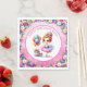 Cute little girl's birthday party paper napkins. Sweet watercolor illustration of a ballerina in a pink and purple tutu with pretty floral accents.