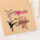 Ballet themed sticker set sheet with two ballerina silhouettes, a pair of ballet slippers with personalized name and pink graphic text reading I (heart) Ballet. Use for crafts, gifts, decorations and more.