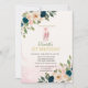 This first birthday invitation with watercolor ballet toe shoes and flowers.