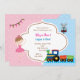 Cute split invitation for twins / siblings / single child, in dual / duo theme: train & ballet / ballerina
