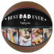Personalized Best Dad Ever Basketball with 5 Photo Collage. This thoughtful basketball is made to celebrate your dad as the “Best Dad Ever.” One panel features a collage of five favorite family photos, bringing together meaningful moments in a sweet and personal way. The other side shows “Best Dad Ever” in bold black and white typography on a solid black background, with small heart accents adding a warm touch. You can change the background color to fit his style. For an extra personal touch, you can add the kids’ names with a small heart next to each one, creating a keepsake that feels truly his. Perfect for Father’s Day, birthdays, Christmas, or any occasion, this basketball offers a special way to share family memories. Each time Dad picks it up, he’ll be reminded of the good times and the love behind the gift. This design blends a clean, modern look with sentimental details, great for a dad who enjoys meaningful keepsakes.