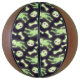Dessins d'un mignon squelette éffrayant, d'os et de crânes qui ressemblent à une lueur verdâtre dans la couleur foncée sur un noir violet foncé arrière - plan et violet étoiles de l'espace dans leurs yeux. Elles sont disposées dans un motif d'halloween non-directionnel tout-en-un. S'il vous plaît noter que cette impression ne brille pas vraiment dans le noir, c'est juste une oeuvre que j'ai faite pour ressembler à la lueur dans le noir.