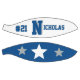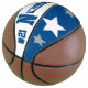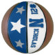 Il s'agit d'un basketball grandeur nature avec deux panneaux conçus avec un nom monogramme (grande première lettre) et un numéro uniforme, dans les couleurs populaires de l'université. Celui-ci est affiché en bleu, blanc et gris. Le deuxième panneau a des couleurs d'équipe avec trois étoiles. Tout le texte, l'art et les couleurs peuvent être supprimés ou modifiés selon vos besoins. Un panneau peut être laissé blanc pour les autographes, etc.