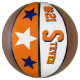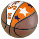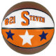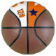 Il s'agit d'un basketball grandeur nature avec deux panneaux conçus avec un nom monogramme (grande première lettre) et un numéro uniforme, dans les couleurs populaires de l'université. Celui-ci est montré en bleu, orange et blanc. Le deuxième panneau a des couleurs d'équipe avec trois étoiles. Tout le texte, l'art et les couleurs peuvent être supprimés ou modifiés selon vos besoins. Un panneau peut être laissé blanc pour les autographes, etc.