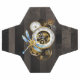 Cadran d'antiquités avec or et lances en laiton, décoré de libellules mécaniques sur arrière - plan brun rayé. Steampunk.
