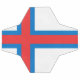 Drapeau des îles Féroé. Le drapeau des îles Féroé est une croix décalée, qui représente le christianisme, suivant comme avec d'autres drapeaux nordiques la tradition établie par Dannebrog. Le drapeau est appelé Merkið qui signifie "la bannière" ou "la marque". Il ressemble aux drapeaux de la Norvège et de l'Islande voisines. Le blanc symbolise les créateurs du drapeau, de la mousse de la mer et du ciel pur et radieux des îles Féroé, tandis que les vieilles couleurs bleu et rouge färöerischen rappellent d'autres drapeaux scandinaves et nordiques, représentant les liens des îles Féroé avec d'autres pays nordiques.