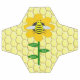Cette superbe boule de football présente une image graphique d'un joli bourdon jaune avec des rayures noires, des yeux, des antennes et des jambes. Il possède de jolies ailes bleues et blanches. L'abeille est assise au milieu d'un tournesol jaune doré. La fleur a une tige verte et trois feuilles. Le message "happy bee day" (Jour heureux des abeilles) apparaît sur les trois feuilles. L'arrière - plan est composé d'un motif jaune peigne.