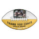 Merci Coach Nom de l'équipe et Team Photo Football. Le texte est une typographie à la mode blanche et noire sur arrière - plan jaune-or. Personnalisez avec votre nom d'entraîneur, le nom de l'équipe et l'année. Vous pouvez modifier n'importe quel texte sur le football ou l'effacer. Un grand cadeau pour un entraîneur ! Ajoutez une photo d'équipe et faites signer par l'équipe les zones non dessinées du ballon avec un marqueur permanent à point fin pour un merveilleux souvenir.