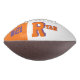 Il s'agit d'un football de taille réelle avec un panneau conçu avec un nom monogramme (grande première lettre) et un numéro uniforme, dans les couleurs populaires de l'université. Celui-ci est montré en orange et violet. Le football est également disponible avec deux panneaux blancs de sorte qu'un 2ème panneau peut inclure des dessins ou de la place pour les signatures.