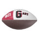 Il s'agit d'un football de taille réelle avec un panneau conçu avec un nom monogramme (grande première lettre) et un numéro uniforme, dans les couleurs populaires de l'université. Celui-ci est montré en rouge et noir. Le football est également disponible avec deux panneaux blancs de sorte qu'un 2ème panneau peut inclure des dessins ou de la place pour les signatures.