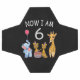 Joyeux 6e anniversaire. Funny and lovely Kids Birthday design with a cute Elephant, two ferrets and a girafe celebrating your birthday at the zoo.
