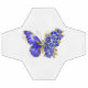 Bijoux, bleu, saphir, papillon aux fleurs pétillantes avec aile décorée de bleu, fleurs précieuses avec feuilles d'or sur arrière - plan blanc.