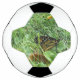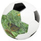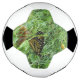 Une balle de football, avec une belle photo, d'un papillon Monarque, allongé dans l'herbe dessus. Photo de (P.J.M. )