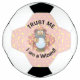 Vieux sorcier avec cape rose regardant la boule de cristal magique.