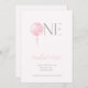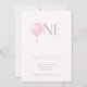 Ballon d'anniversaire rose, pour le premier anniversaire de la petite fille. Cette invitation à UN anniversaire est tellement adorable. Le ballon rose a des confettis roses à l'intérieur et l'écriture est grise.