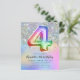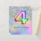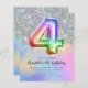 Invitation d'anniversaire 4 ans Fille Garçon avec ballon en feuille de papier alu à paillettes holographiques arc-en-ciel
