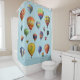 Des montgolfières volent sur ce rideau de douche bleu clair.