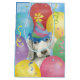 Joyeux salutations d'anniversaire avec ce design mettant en vedette un mignon chiot Weimaraner portant un casquette de fête entouré de ballons colorés, de confettis et de serpentins.