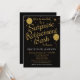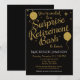 Cette amusante invitation de retraite surprise met en vedette arrière - plan noir avec des faux ballons de parties scintillant d'or et des étoiles. Il possède une atmosphère élégante et fantaisiste avec un côté élégant. Le Retiree va adorer cet élégant invitation de retraite surprise, tout comme vos invités. Convient aux hommes ou aux femmes qui prennent leur retraite.