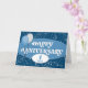 Il s'agit d'une carte Employé 1er Anniversaire en bleu avec le texte centralisé 'Joyeux Anniversaire' écrit en blanc dans une police attrayante et placé contre une zone de texte bleu pâle, en forme ovale. Sous ce texte se trouve le nombre d'années. À gauche du texte se trouvent deux ballons, un gris pâle et un bleu, qui sont ancrés par leurs cordes enroulées autour du swish du premier "A" de l'anniversaire. L'arrière - plan est dans un bleu foncé avec une circulaire de couleur claire et étoiles motif. VEUILLEZ NOTER : L'effet brillant argenté est simulé dans l'illustration, aucune parties scintillant réelle avec être utilisé dans la fabrication de cette carte. Conception par NATALIE KINNEAR