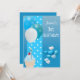 Sucré cupcake et ballons blancs et bleus sur arrière - plan bleu. Nom et année de la Personnaliser.