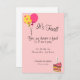 L'amusement et l'invitation rose pour un "divorce est" partie finale. Arrière - plan rose avec les ballons roses et jaunes en haut. une tranche de gâteau avec le givrage rose et une bougie en bas
