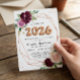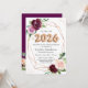 Girly Plum Purple Floral Rose Gold Balloons Typeface Graduation Party Invitation.