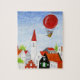Balloon Mouse & Roofs Puzzle featuring Mouse floating in her hot air balloon above the rooftops of a town.