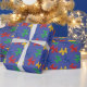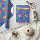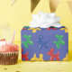 This colourful wrapping paper features a pattern of balloon sculptures in the shape of dogs in bright primary colours of red, yellow, blue and green against a blue background. Find coordinating party supplies and more in the Doggy Balloon Sculptures collection from Asterisk Designs.