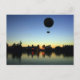A Balloon and City in Silhoutte at Sunset, with Reflections in a Lake.