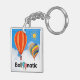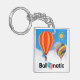 This original keychain design shows a Balloonatic (ballooning enthusiast) floating along in the clouds with a bird's eye view of the ground in a hot air balloon and not a care in the world. Magic. Up, up and away.